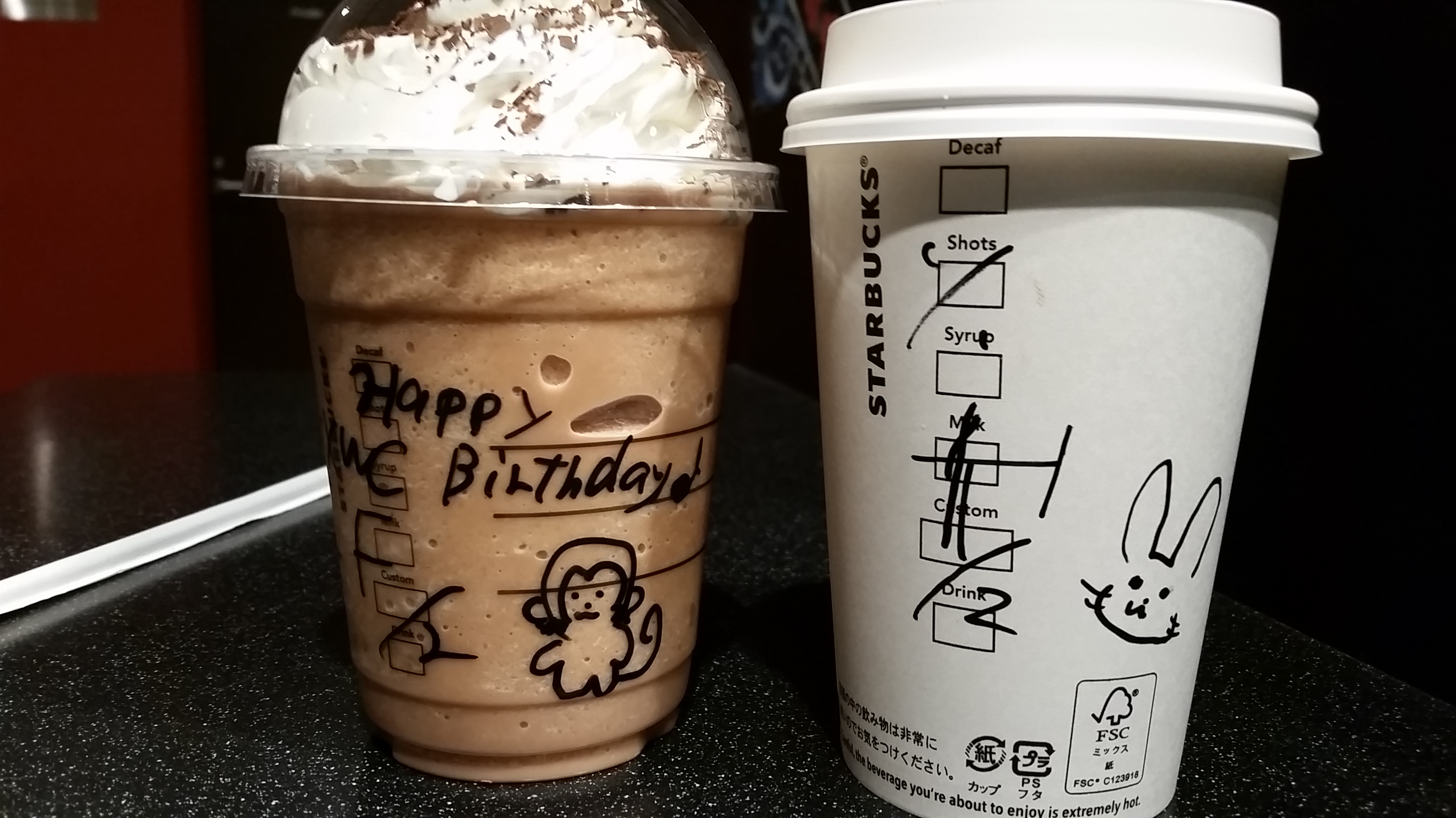 妹が誕生日だったので、某コーヒーショップにお願いしたら豪華にお絵かきして頂けました!!