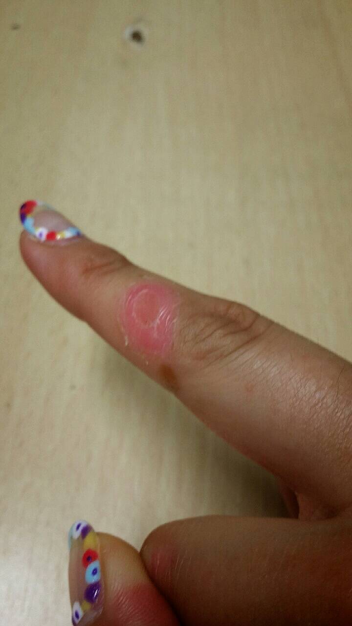 先日夕食のおかずにから揚げをあげていたら、手に油がはじいてしまいこんなことに\(◎o◎)/!