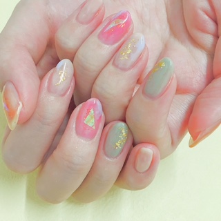 ニュアンスデザインに色変更してカーキとピンクでキレイめにしました(^u^)
