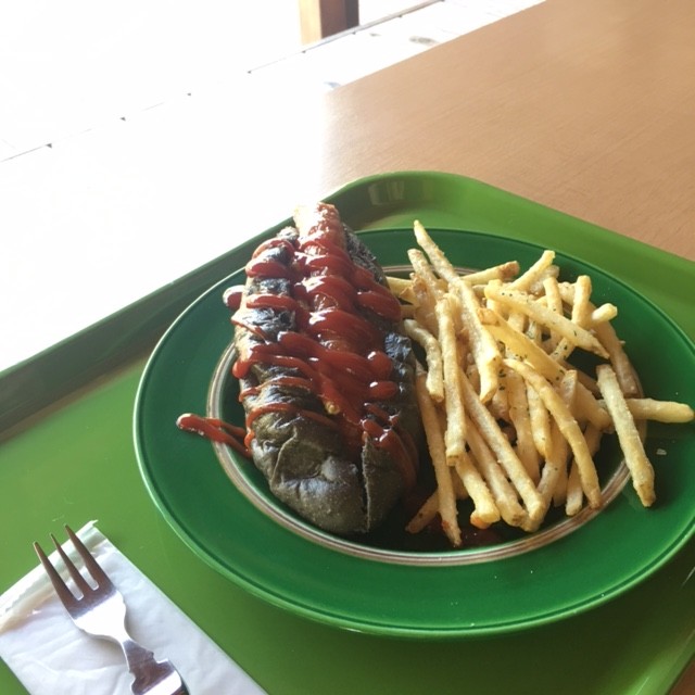 鬼怒川で食べたブラックホットドックです!!