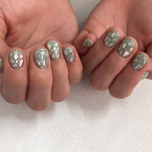 透け透けなグレージュブルーにシェルを散りばめました♪