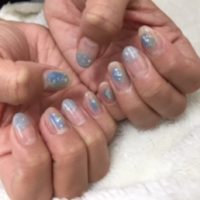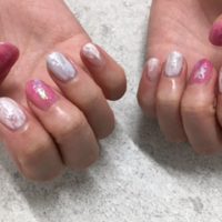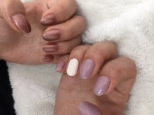 ブラウンカラーとパールが入ったパープル×ニットネイルで☆