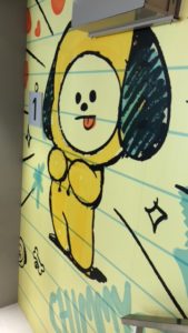 防弾少年団とコラボのbt21が描かれている店内で、