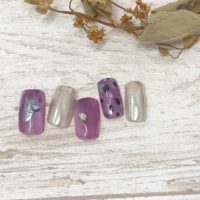 ブラウンとくすみボルドーにクリアで重くなりすぎないように