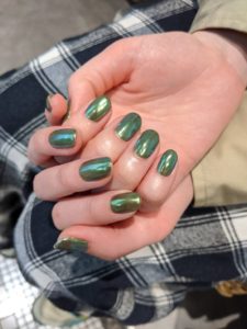 カーキに緑の偏光パウダーで