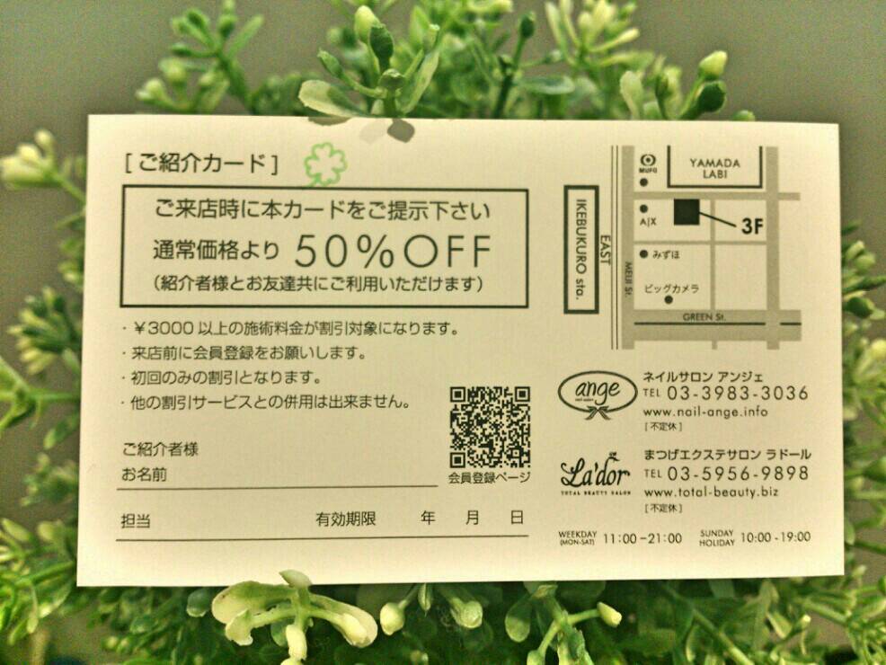 こちらのカードを持参して頂いてご友人、ご家族をご紹介頂きますと、